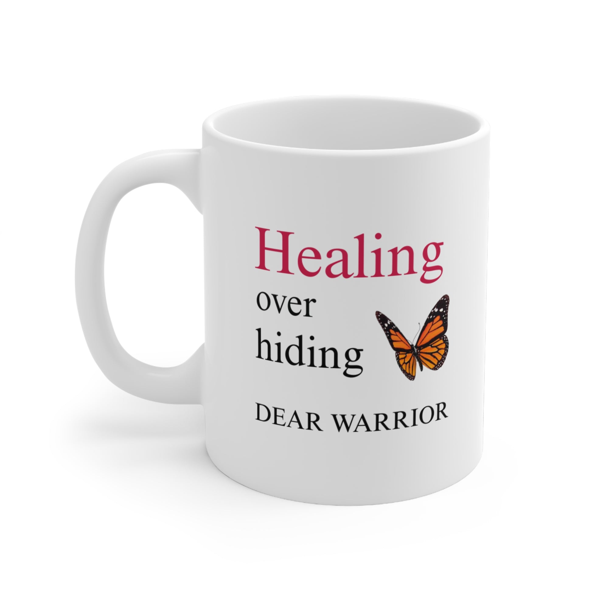 Empowering Warrior Mug, Inspirational Coffee Cup, Healing Over Hiding Gift for Her, Motivational Tea Mug, Butterfly Design